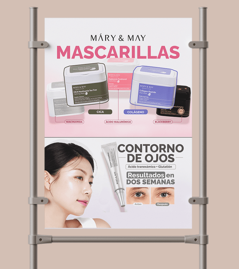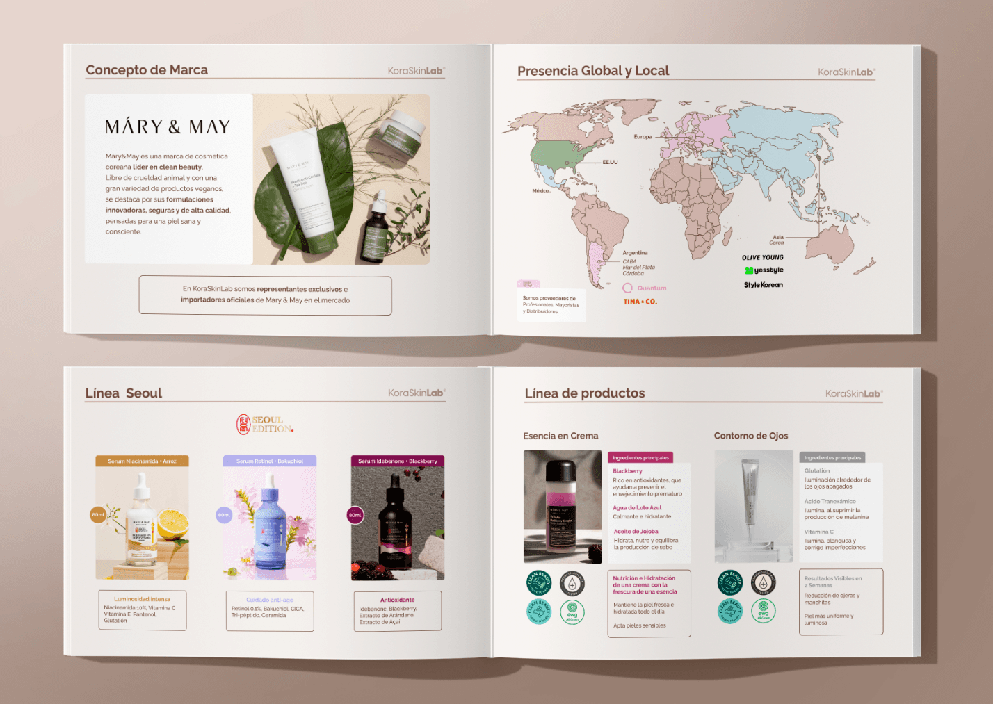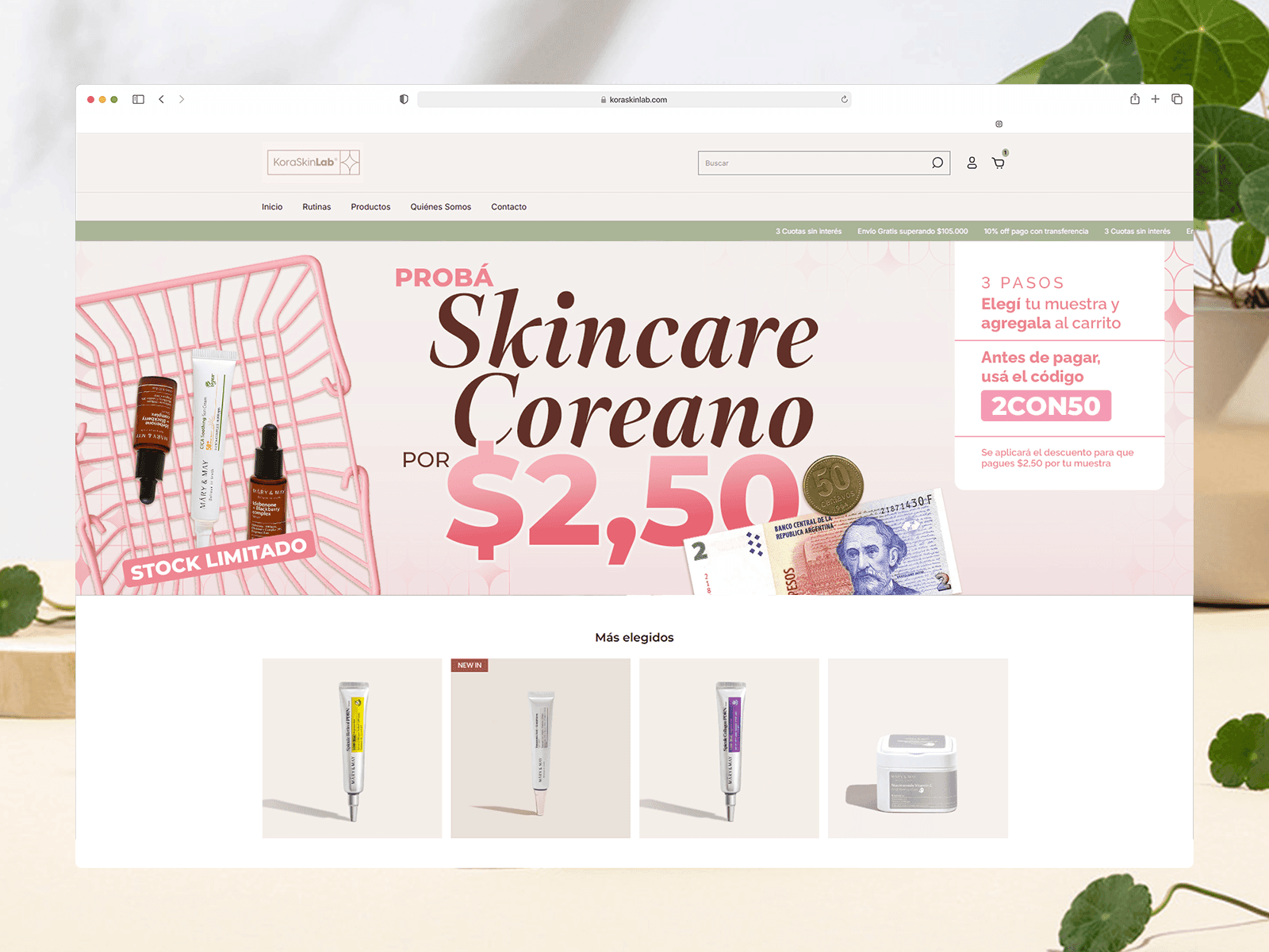 KoraSkinLab is an Argentine brand founded in 2025 to bring premium Korean cosmetics closer to the local market. The brand specializes in a high-quality selection of products, including renowned names like Mary & May, VT Cosmetics, and Purito. The goal was to translate this K-Beauty essence into high-impact commercial assets that effectively differentiate each brand within their stock.