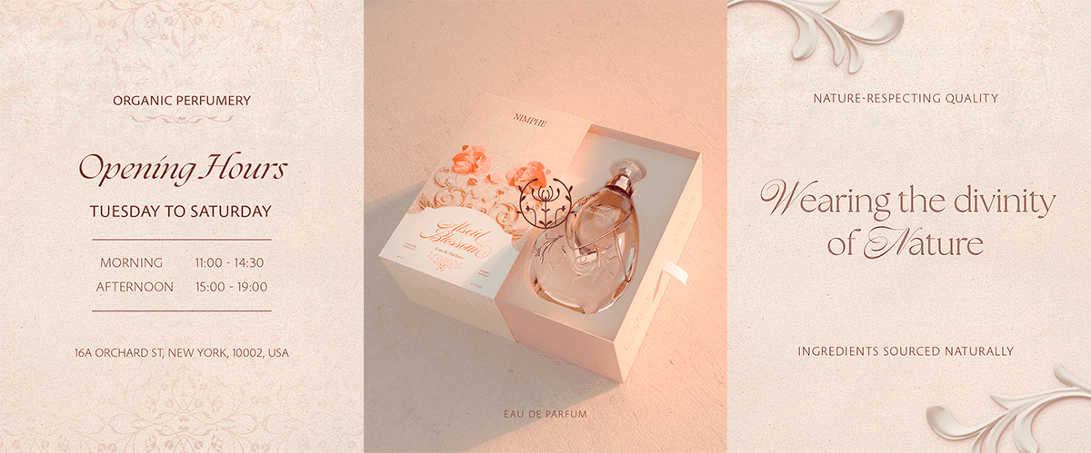 Fictional project developed for the Final Project course of the Multimedia Design degree. It involved the complete development of a brand identity, including product modeling and its corresponding packaging design. For my project, I created NIMPHE, a brand specializing in the production and commercialization of high-quality fragrances, inspired by nymphs, guardians of nature, a concept that is integrated into all its products.