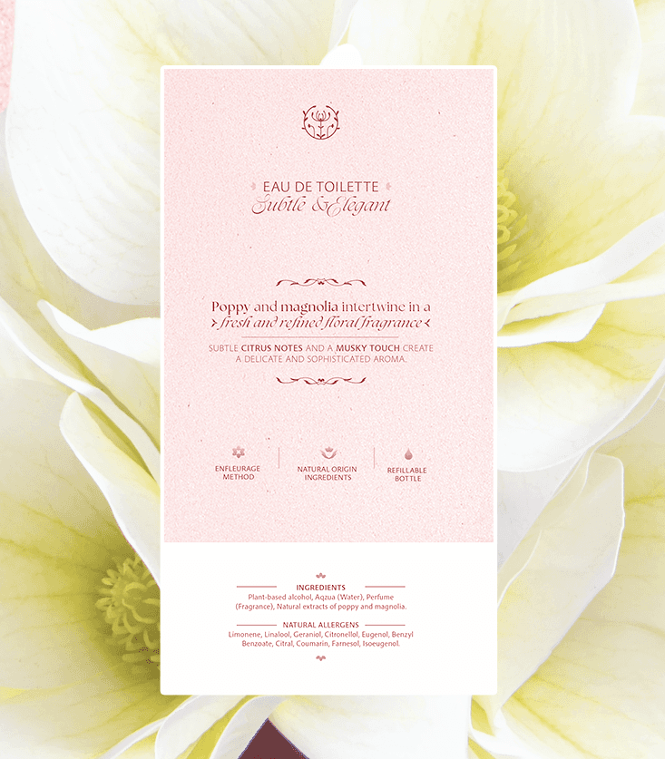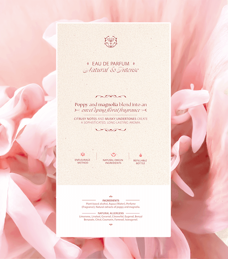 This is the name I chose for the product line within Nimphe, which revolves around floral fragrances centered on poppy. The name of the collection comes from the Alseides, a type of nymph in Greek mythology associated with flowers, meadows, and valleys.